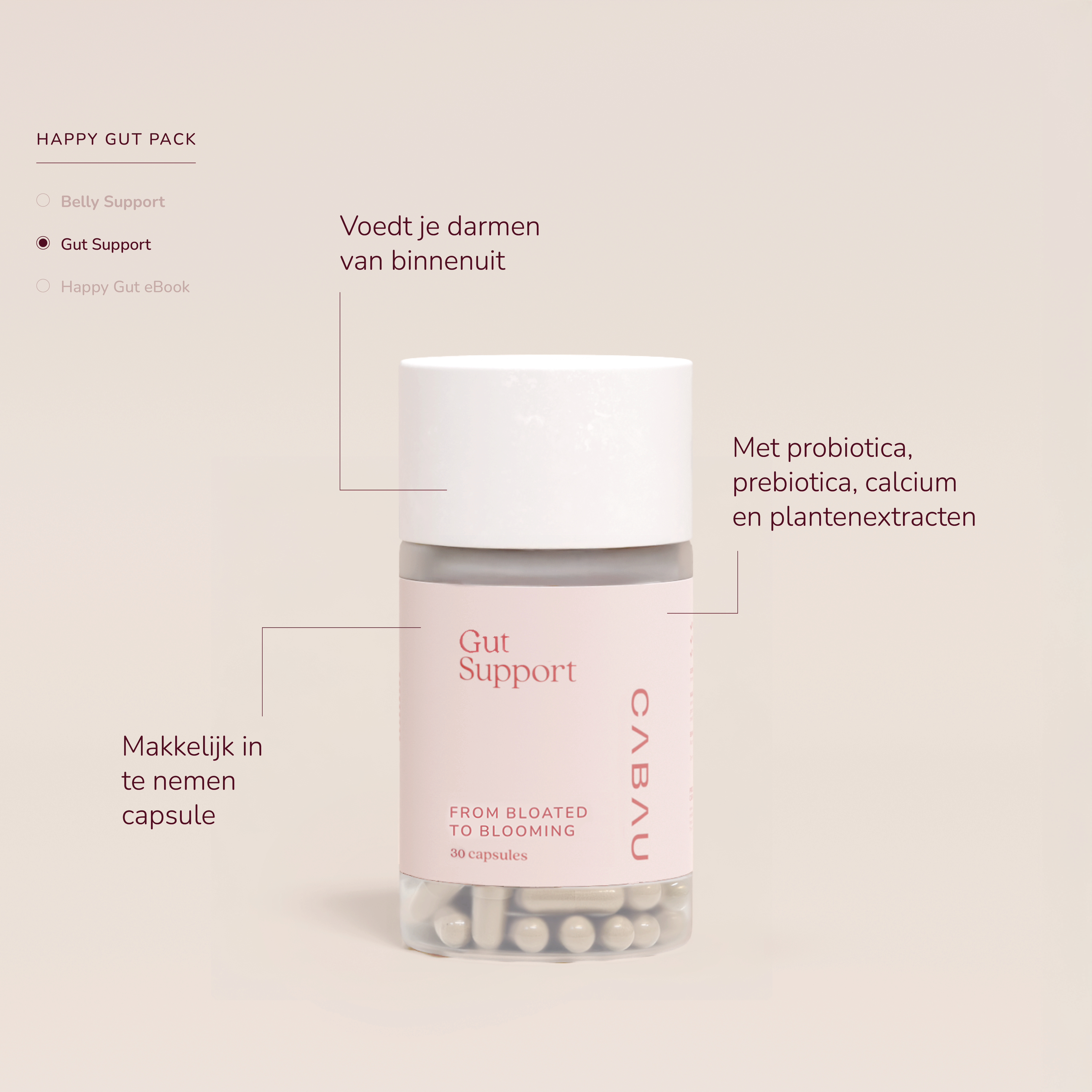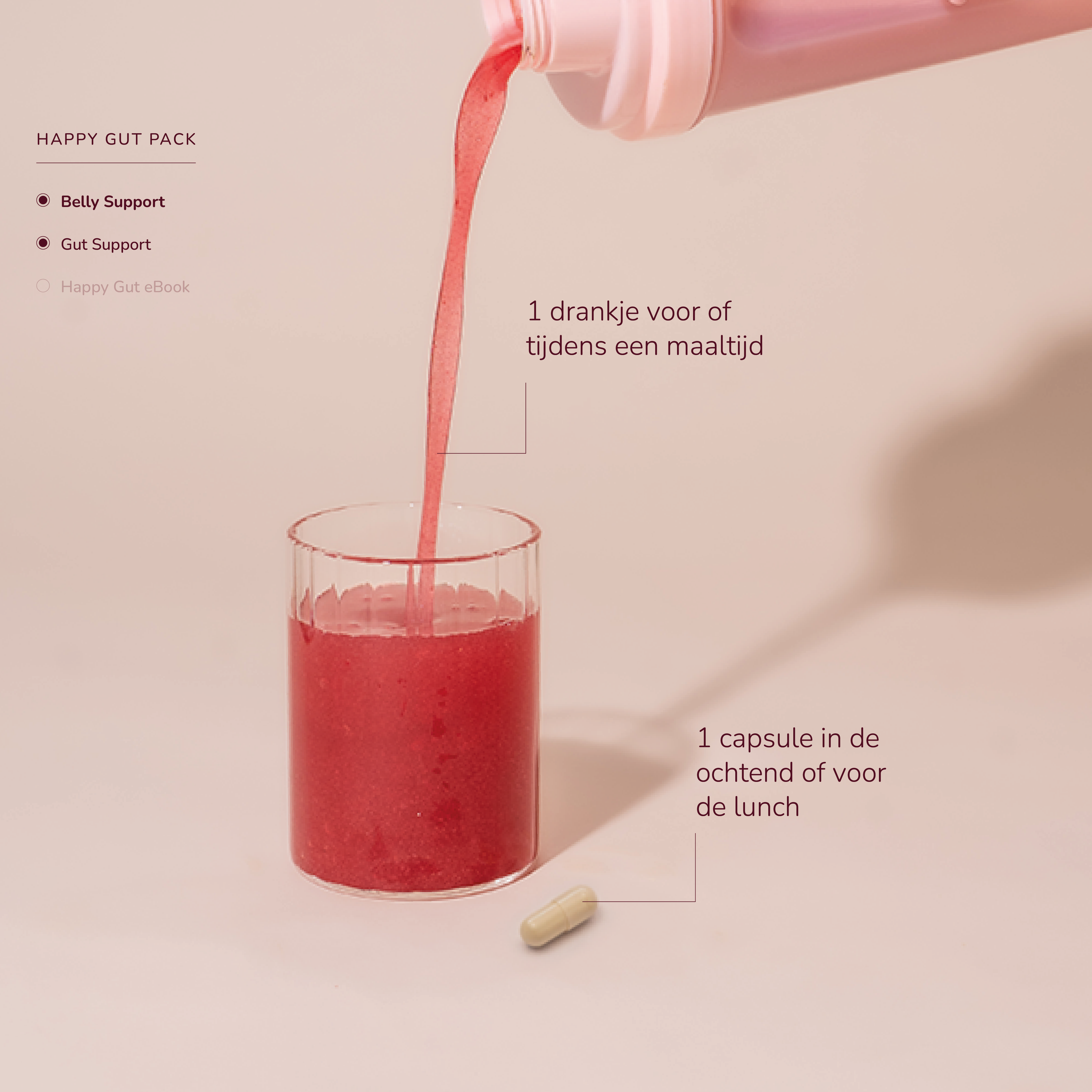 Calcium, bacterial strains, hydroxypropylmethylcellulose (capsule), L-glutamine, herbs, potato starch (filler), FOS, XOS, acacia fiber, retinyl acetate.Ingredients - Belly Support