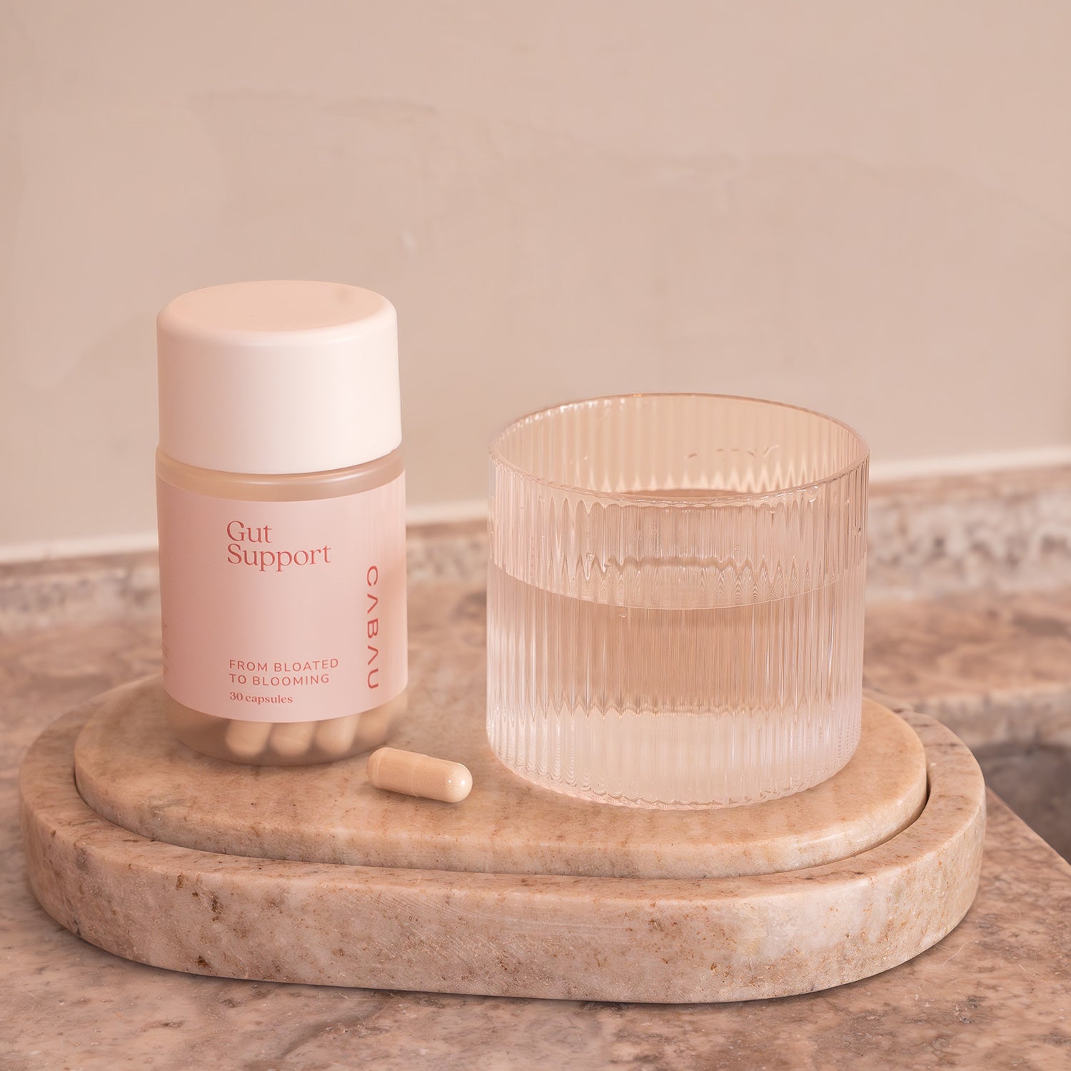 Ingredients Calcium, bacterial strains, hydroxypropylmethylcellulose (capsule), L-glutamine, herbs, potato starch (filler), FOS, XOS, acacia fiber, retinyl acetate. Nutritional Values per Capsule - Probiotic blend¹ – 50 billion CFU - Prebiotic blend² – 57.73 mg - Vitamin A – 200 mcg (25% NRV*) - Calcium (Aquamin™ F, from red algae) – 80 mg (10% NRV*) - Milk thistle extract (10:1) – 25 mg of which silymarin 20 mg - Mongolian dandelion extract (10:1) – 25 mg of which flavones 1.25 mg of which chicoric acid 0.05 mg - L-Glutamine – 100 mg *NRV = Nutrient Reference Value ¹ Probiotic blend consists of: L. paracasei LPc-G110, L. plantarum Lp-G18, L. rhamnosus Lr-G14, L. casei LC-G11, L. acidophilus LA-G80, L. helveticus LH-G51, L. fermentum LF-G89, L. reuteri LR-G100, L. plantarum ZJUF T34, B. breve BB-G95, B. subsp. Longum BL-G301, B. lactis BL-G101, B. bifidum BB-G90. ² Prebiotic blend consists of: FOS (fructo-oligosaccharides), XOS (xylo-oligosaccharides), and inulin.