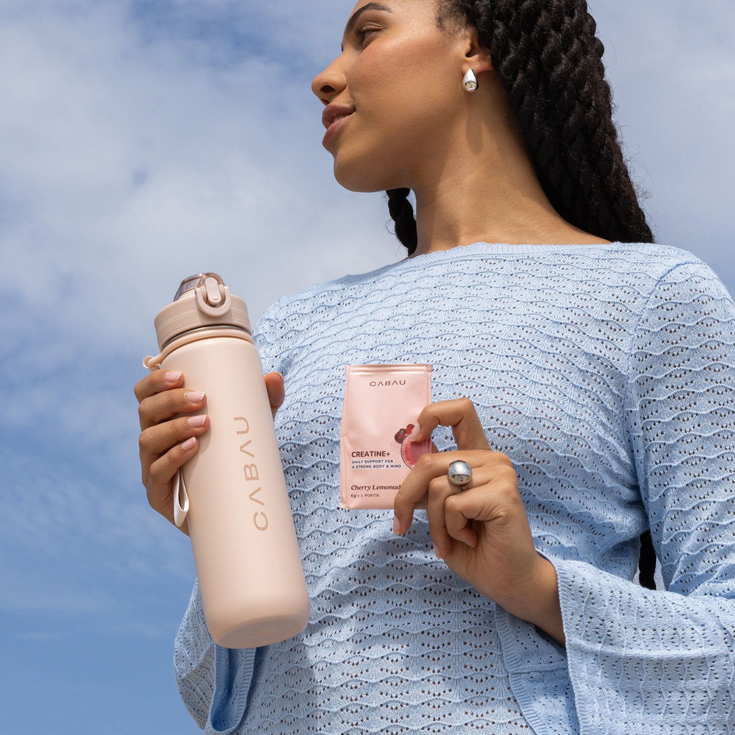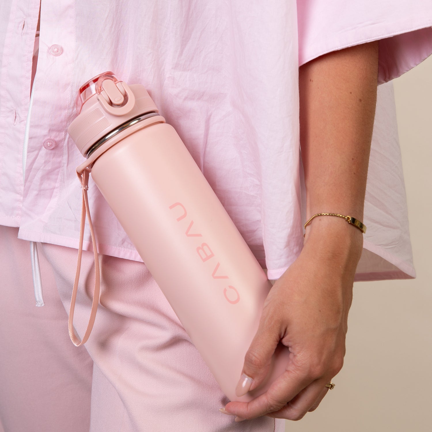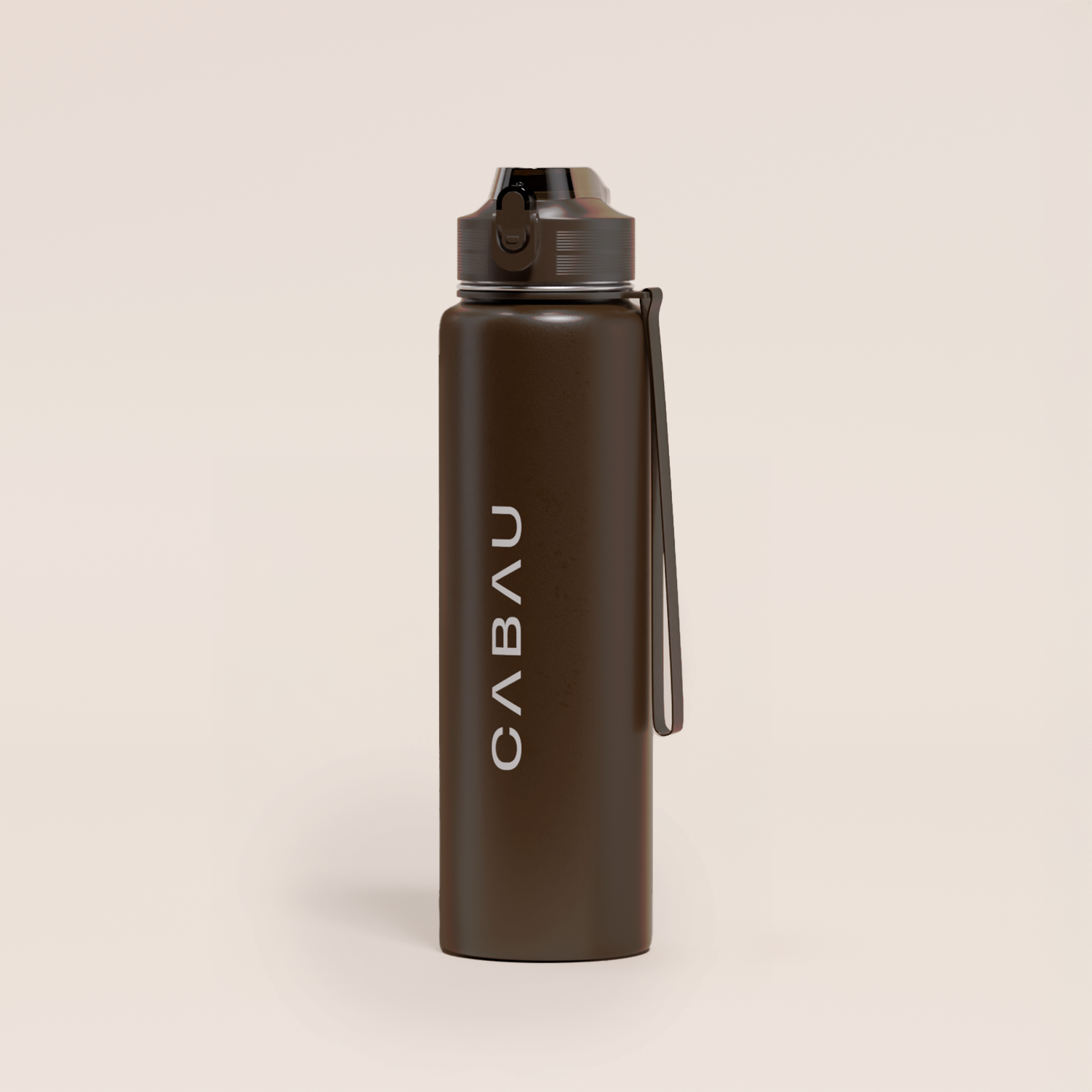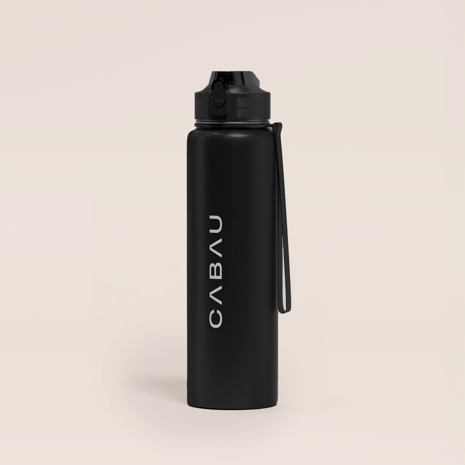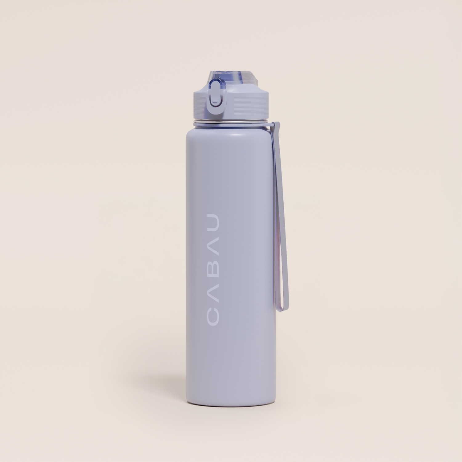 Die Cabau Wasserflasche ist praktisch und stilvoll zugleich. Das breite Mundstück ermöglicht bequemes Trinken, ohne die Flasche kippen zu müssen. So können Sie auch unterwegs bequem trinken.